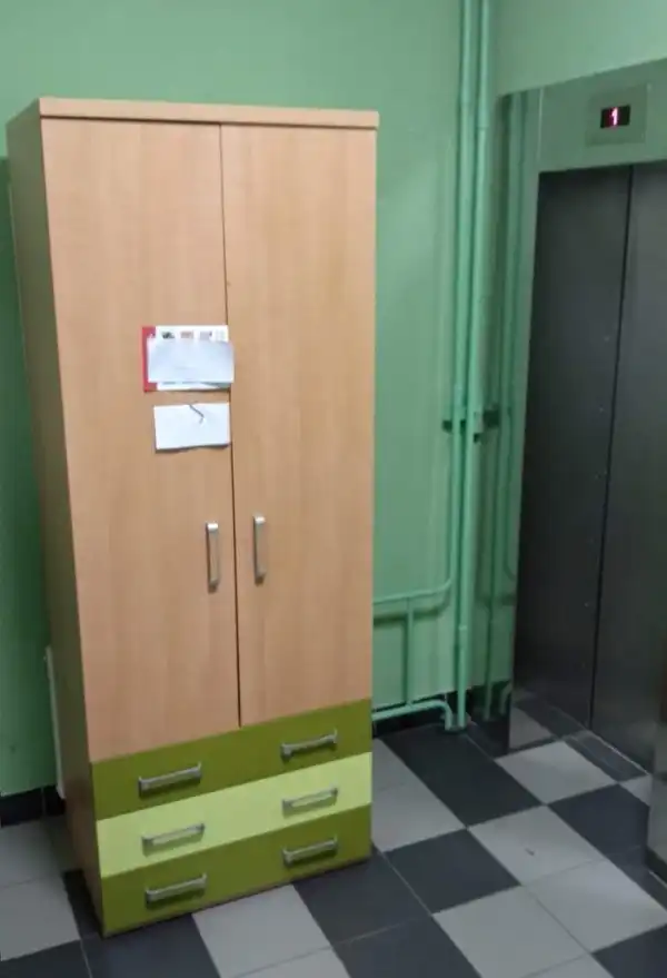 В одном из подъездов новостройки на протяжении двух дней у лифта стоял шкаф с запиской от его владельца. Как оказалось, шкаф не поместился в лифт из-за своих размеров, но соседям, видимо, уже надоел этот элемент мебели, мешающий входу в лифт. Поэтому они решили помочь хозяину шкафа.