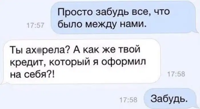 Когда он взял кредит на себя - пора расставаться