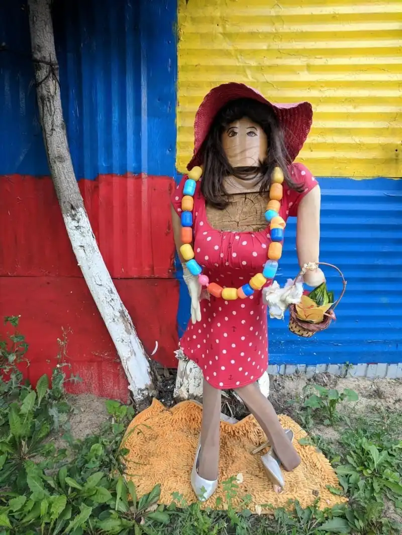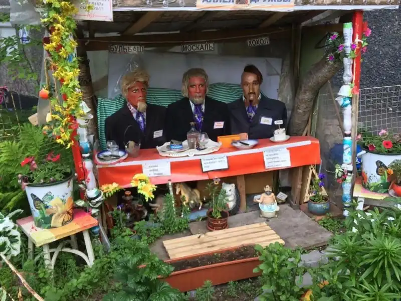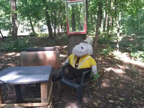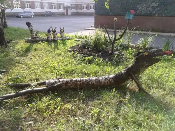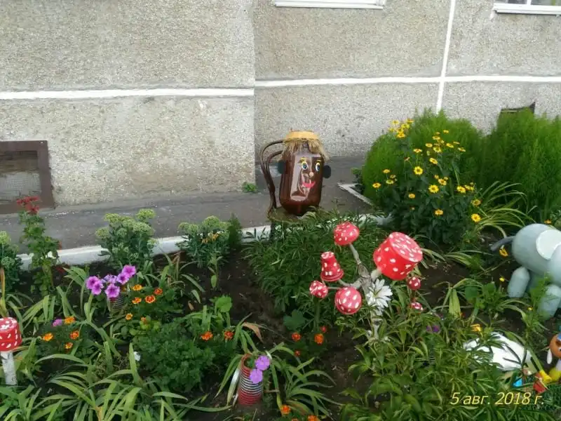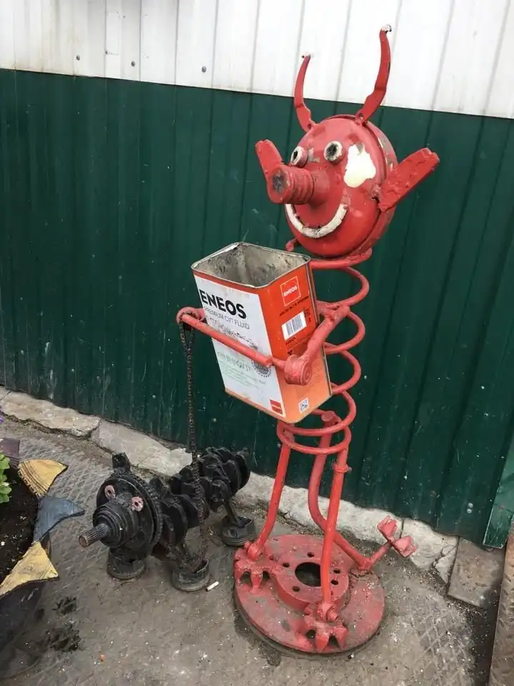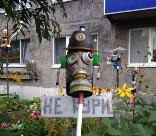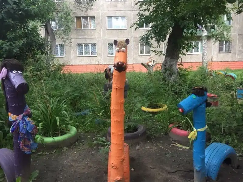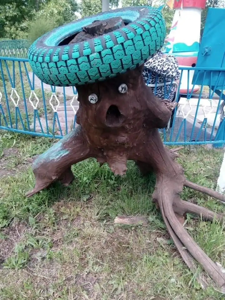 Никак не истощится фантазия и подручный материал у народных умельцев, а потому наши дворы продолжают заселять жуткого вида персонажи и диковинные животные. Кого и радует это буйство поделок - так это детвору и животинок. Уж они-то находят малым архитектурным формам применение.