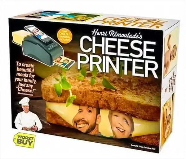 «Сырный принтер. Чтобы создать красивое блюдо для вашей семьи, просто скажите „сыр“».