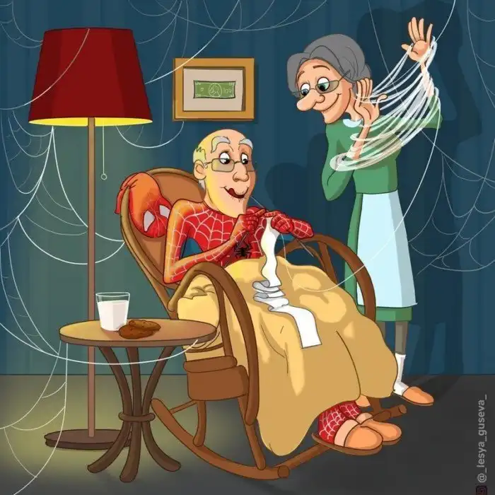 Так появилась серия «Пенсионерия» – цикл работ про постаревших героев Marvel, DC и Disney. Бэтмен, навсегда повесивший свой костюм на гвоздь и сладко спящий в берушах, Халк, закипающий от злости в очереди в поликлинике и другие персонажи, о судьбе которых Лесе, бесспорно, удалось очень смешно пофантазировать. «Пенсионерия» принесла художнице международную известность, было много публикаций в западных СМИ.