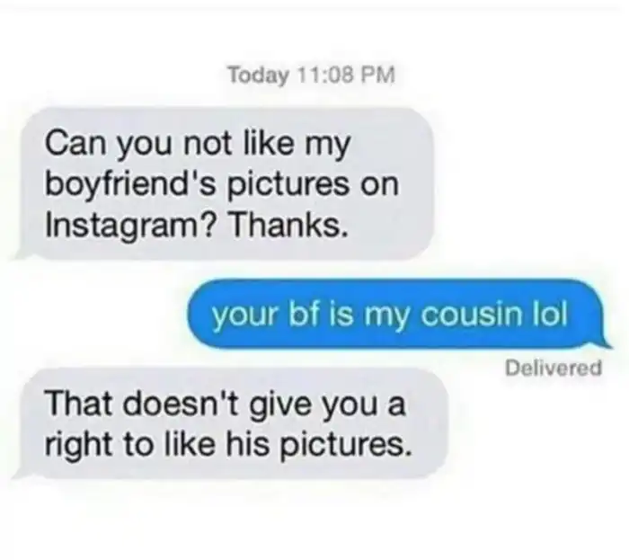- Могла бы ты не лайкать фотографии моего парня в инстаграме? Спасибо.