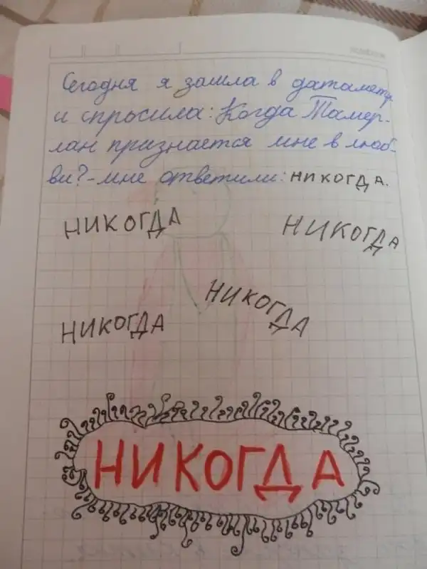 В паблике «мам ну не читай» подписчики выкладывают золотые цитаты из своих детских дневничков. Когда-то в далёком и сопливом возрасте эти записи казались им шедеврами, достойными звания «Золотая цитата Вконтакте 2006». Но сейчас им если и хочется выносить эту стыдобу на свет божий, то только ради того, чтобы повеселить себя и других читателей.