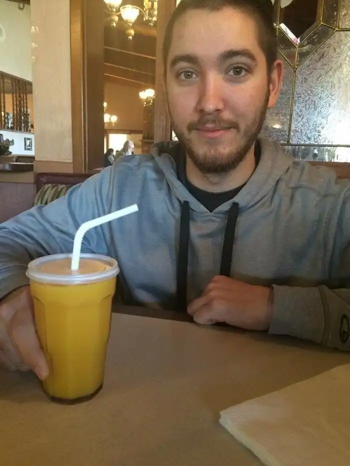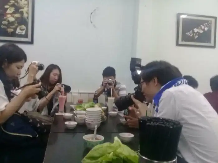 Я попросил нашего официанта сфотографировать нас с друзьями на мой iPhone. Он заставил нас поменять кучу разных поз, а потом ушёл, смеясь. Каждая фото, которую он сделал, была вот такой.
