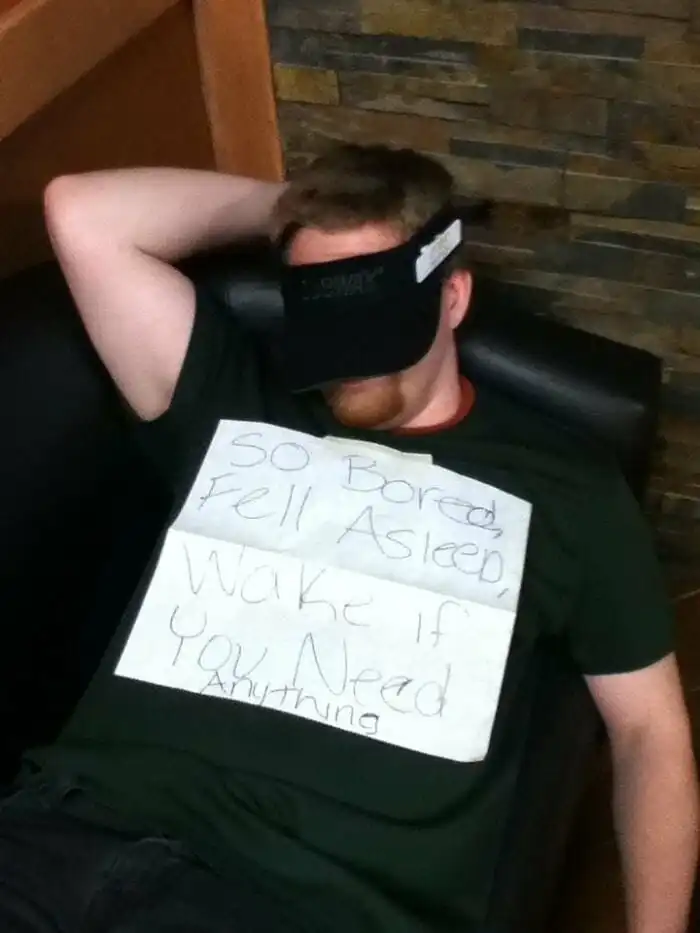 Так устал, что уснул. Разбудить в случае необходимости.