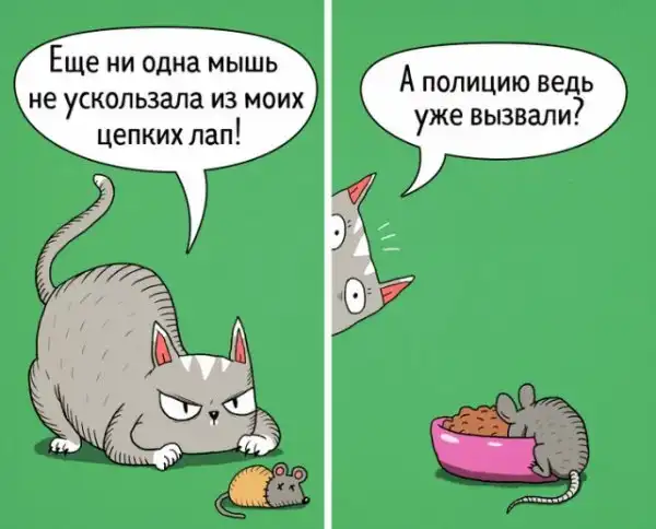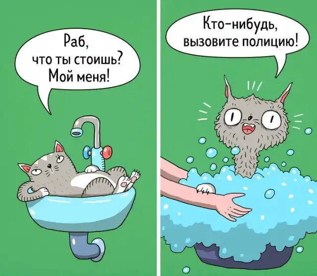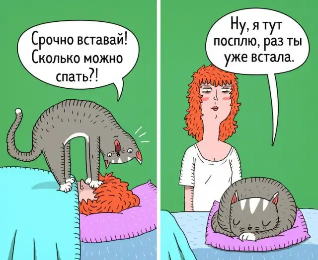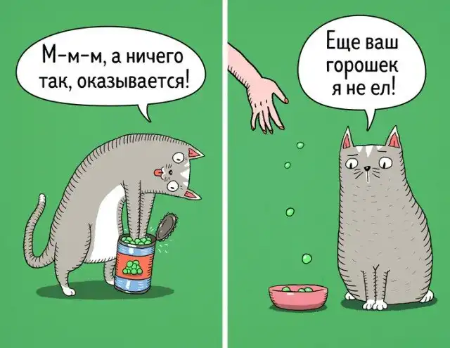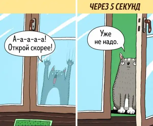 Все владельцы кошек знают: их настроение и желания меняются, как погода в Лондоне. Только сейчас они хотели одного, а через секунду могут потребовать совсем другого. Подобных ситуаций так много, что мы собрали целый комикс о необузданной натуре кошек.