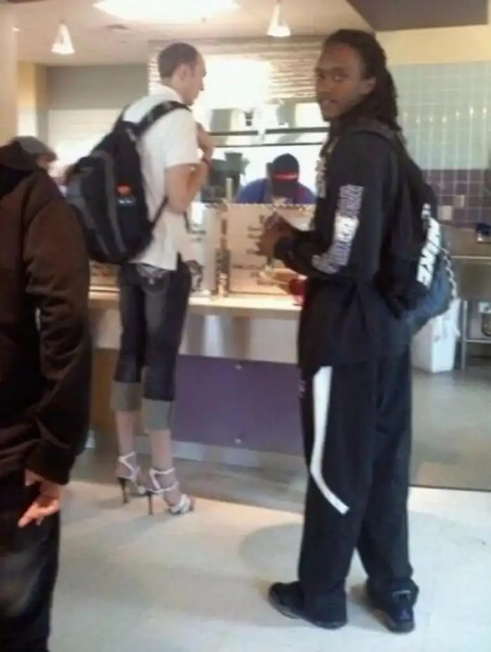 Быть может он хочет прочувствовать, как женщины ходят на этих ходулях?