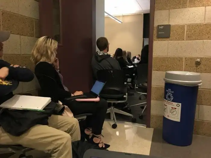 5. Опоздавшим не хватило места в аудитории, но тяга к знаниям была сильнее