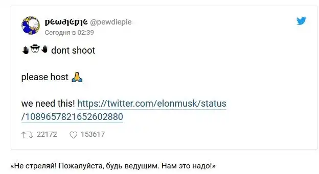 Meme Review — проект видеоблогера Феликса Чельберга, известного как PewDiePie. Обладатель самого популярного канала на YouTube регулярно выпускает ролики с обзорами на мемы. Неизвестно, обговаривали ли Маск и Чельберг совместное проведение шоу заранее, но в Твиттере PewDiePie согласился на сотрудничество.