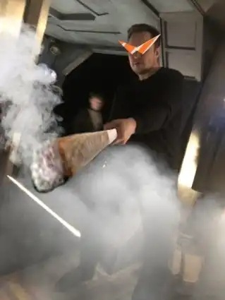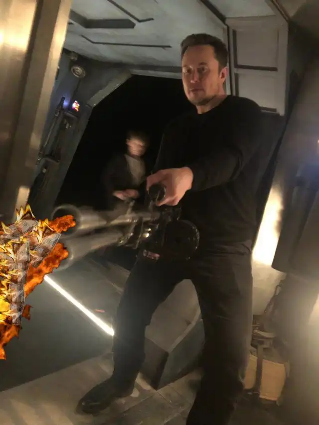 Глава компаний Tesla и SpaceX опубликовал это эпичное фото в Твиттере с подписью «Мне провести Meme Review?». Так называется шоу Феликса Чельберга, где он оценивает мемы.