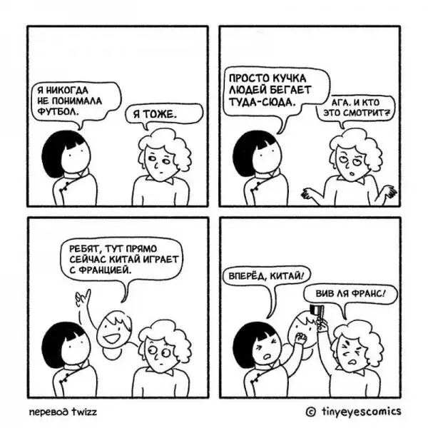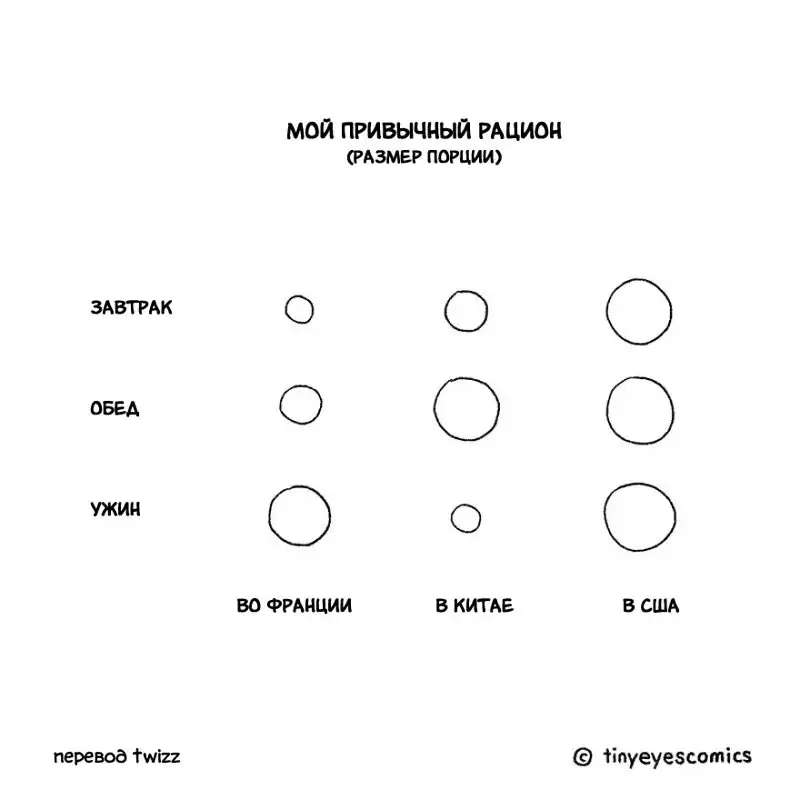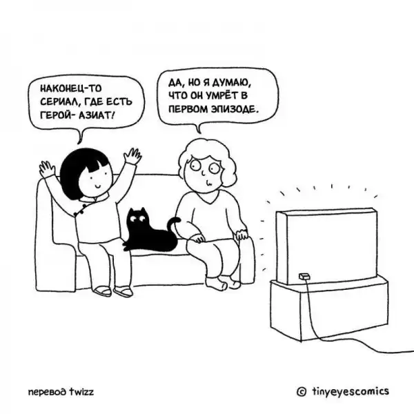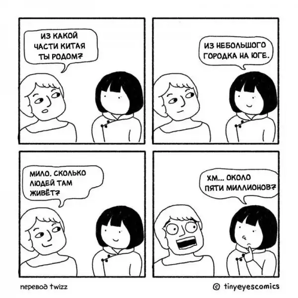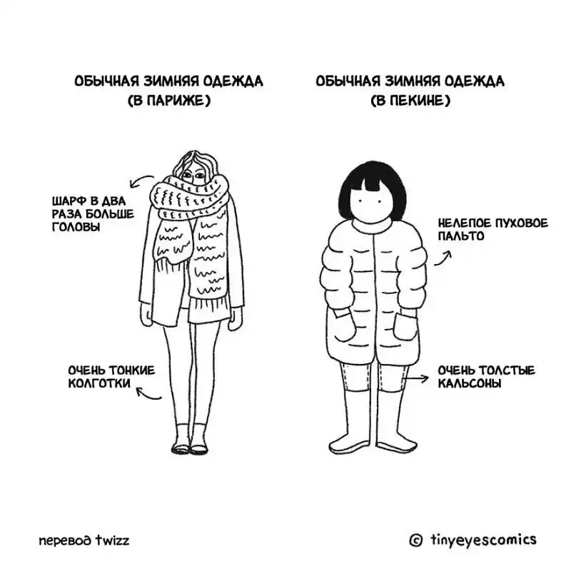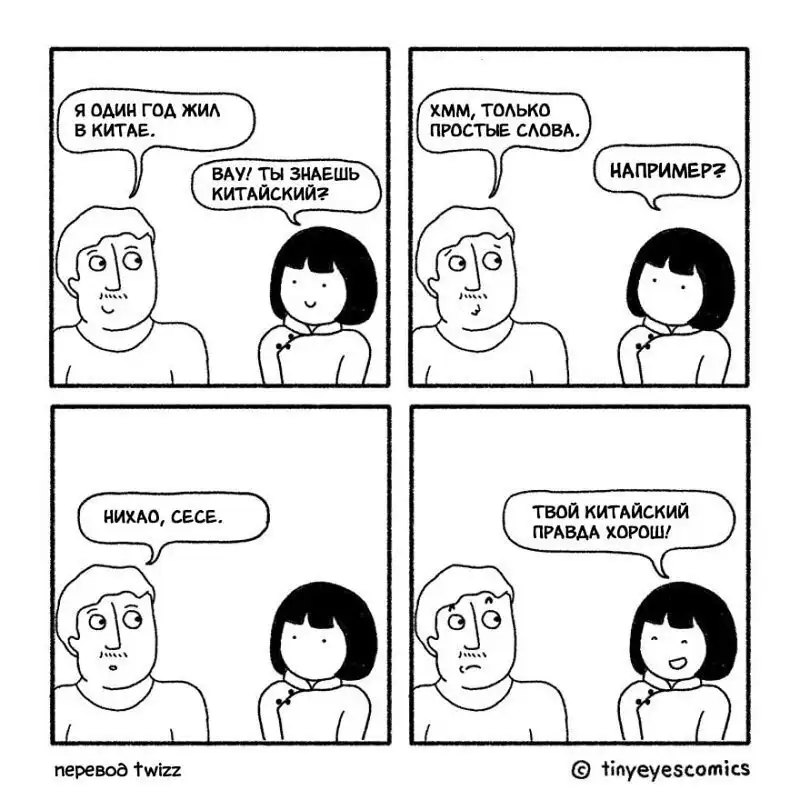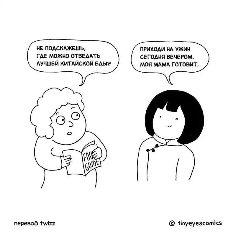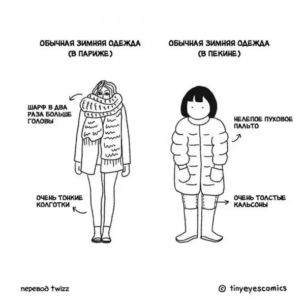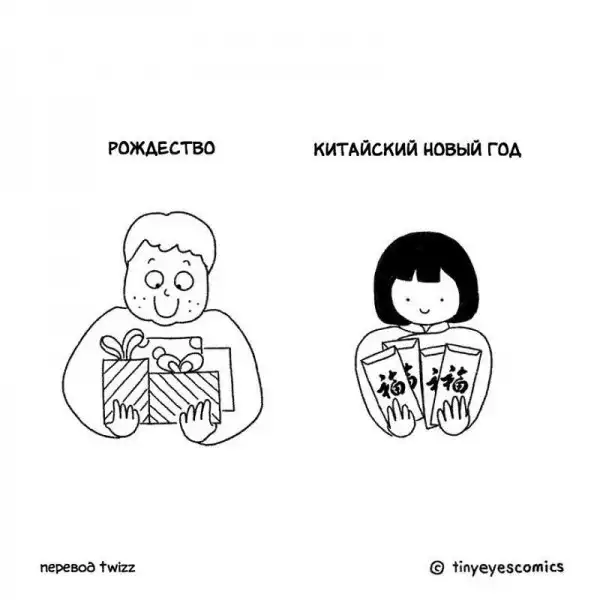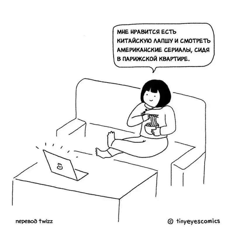 Кто может лучше рассказать о Китае, чем китаянка? Девушка по имени Сию родилась в Пекине, но успела поучиться и поработать в США, Великобритании и Франции. Так что она как следует понаблюдала за людьми и их привычками в других странах. В своей серии комиксов, которую она в шутку назвала «Узкие глаза», китаянка сравнивает восточную и западную культуру и рассказывает об их сходстве и различиях.