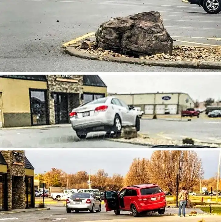 Сотрудники магазина положили в клумбу огромный камень, чтобы водители не парковали свои авто на растениях