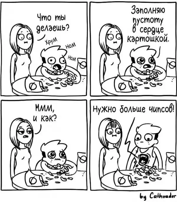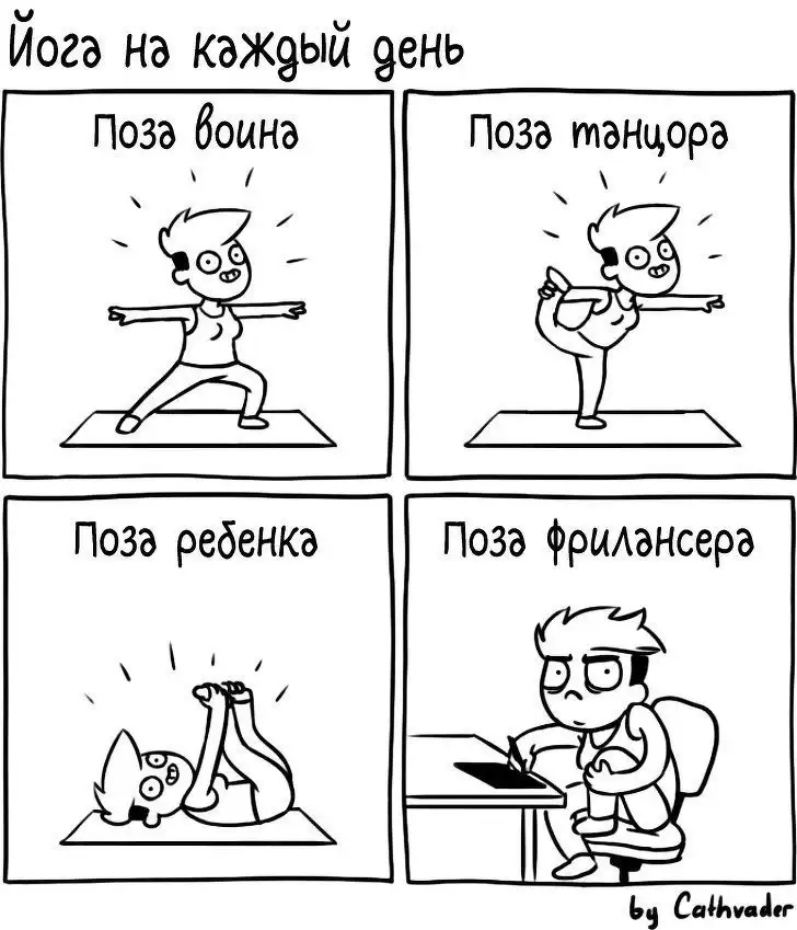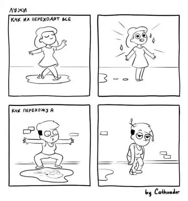 Художница из Санкт-Петербурга Анастасия Киселёва создаёт ироничные комиксы, в которых обыгрывает разные истории — от рождения интроверта до жизни фрилансера, от женской логики до сражений с собственной ленью.