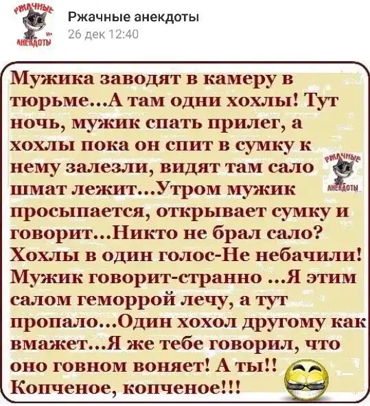 В подборке присутствуют: переписки, сообщения, фотографии, ну и просто анекдоты из ранее упомянутой соц. сети. :haha: