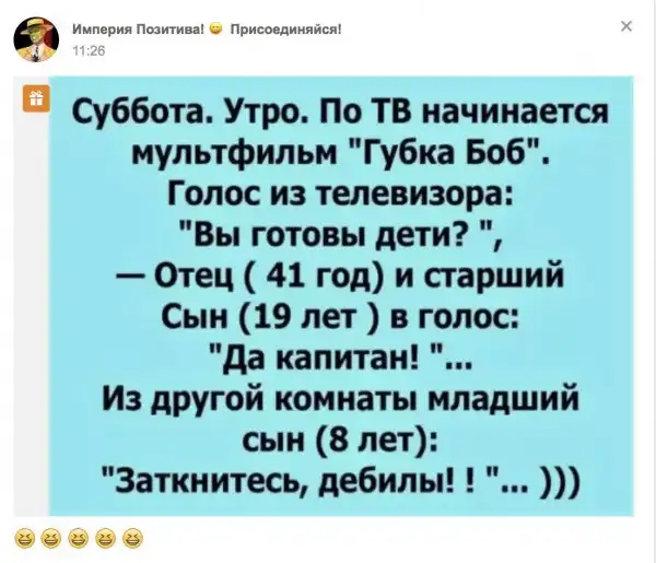 В подборке присутствуют: переписки, сообщения, фотографии, ну и просто анекдоты из ранее упомянутой соц. сети. :haha: