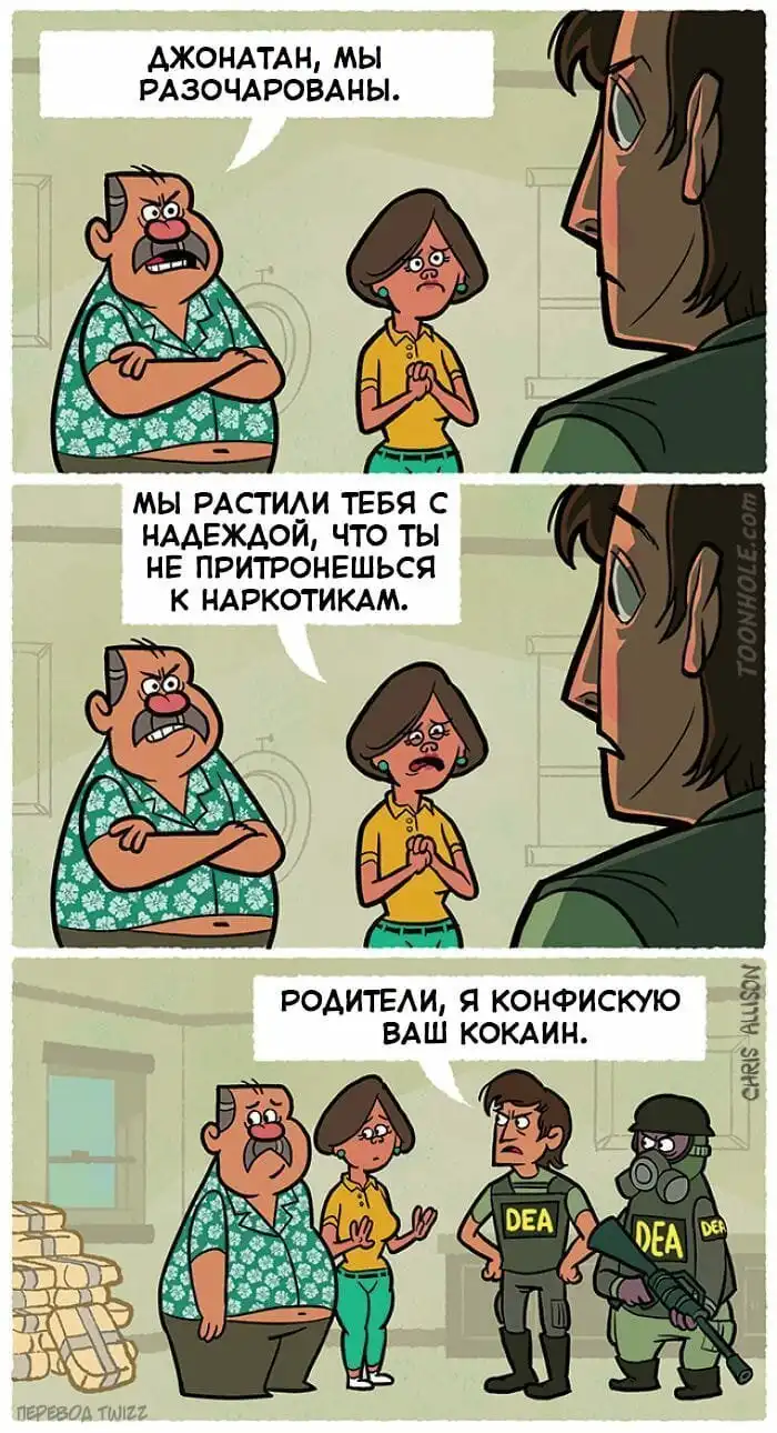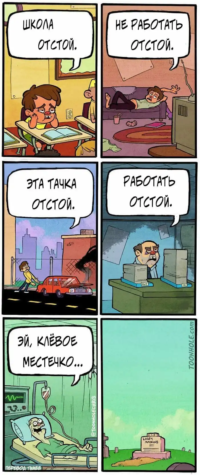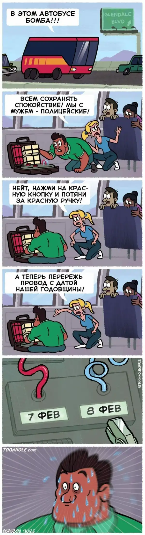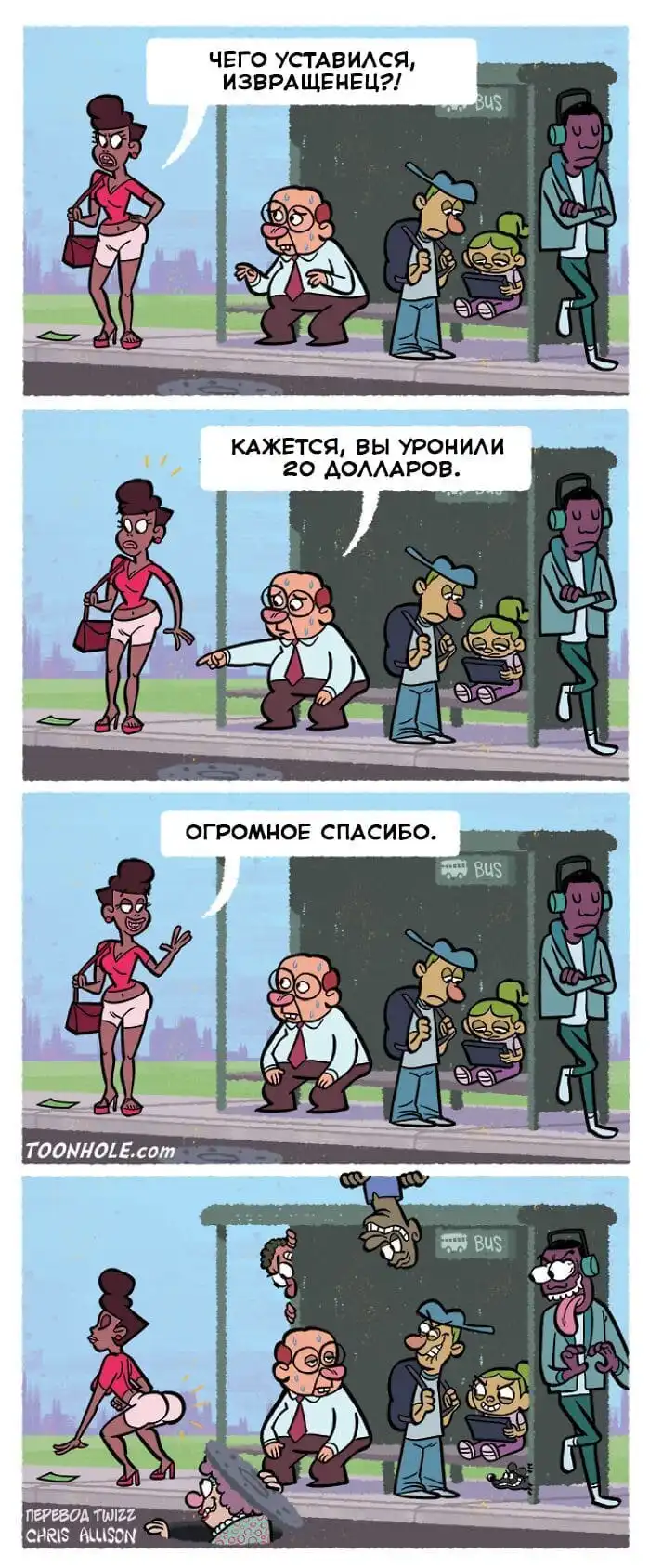 ToonHoleChris — художник, он создаёт комиксы на протяжении 9 лет и публикует их в интернете, в частности в Инстаграм-аккаунте. Это истории, касающиеся различных сфер жизни, а их концовки всегда неожиданные и смешные. Знакомые каждому темы, на которые художник смотрит через призму своего абсурдного юмора — то что нужно, чтобы развеять тоску и поднять себе настроение на раз-два.