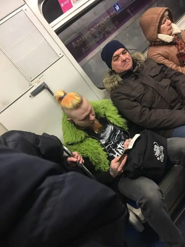 Очередная подборка фотографий со странными и модными персонажами, которых можно встретить в российском метро.
