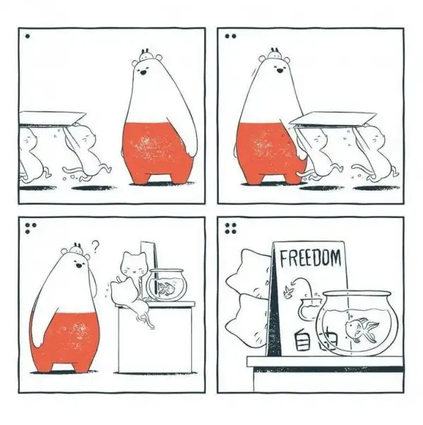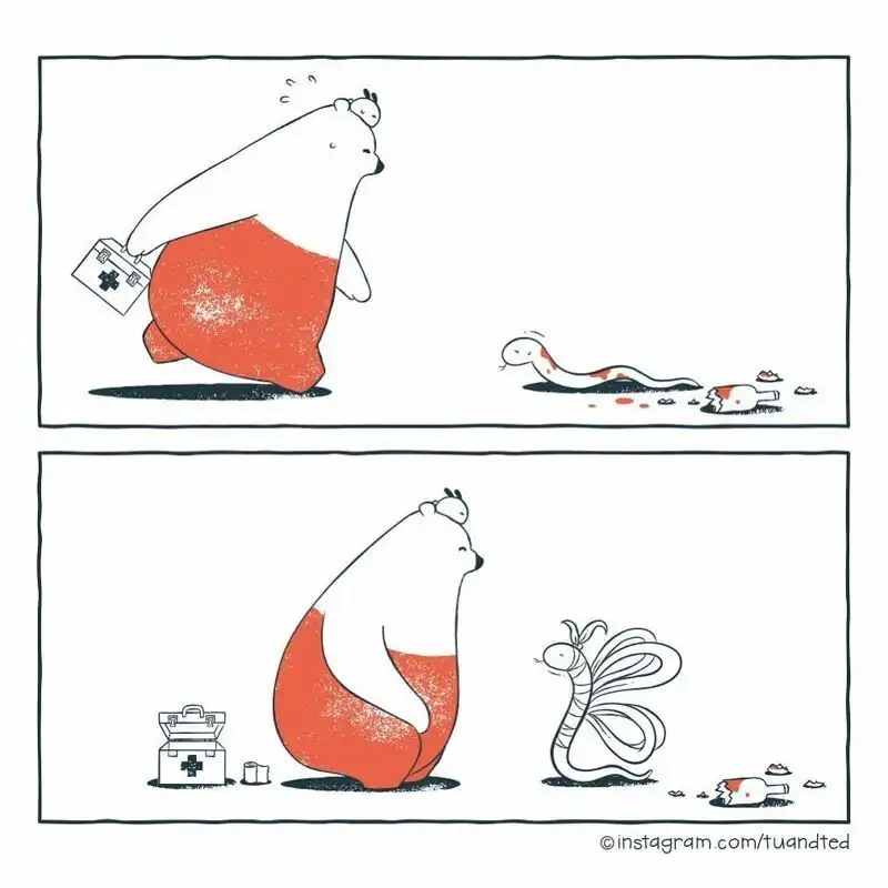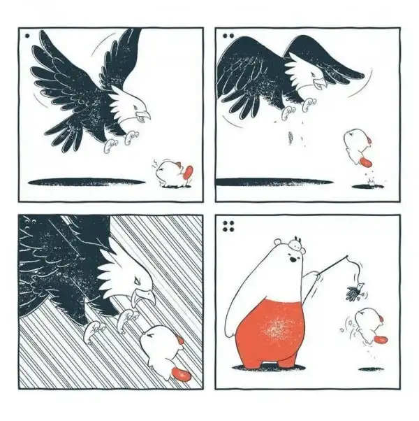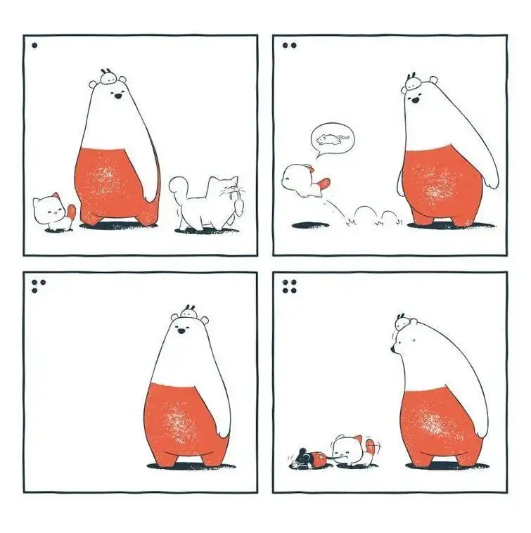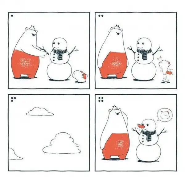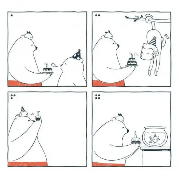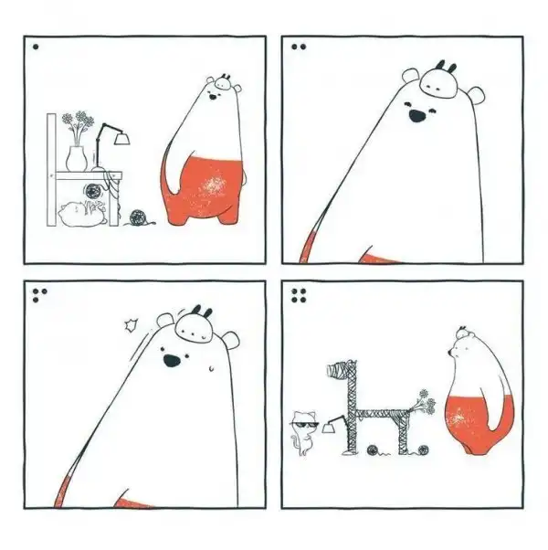 Два друга, графический дизайнер и иллюстратор Чоу Хон Лам (Chow Hon Lam) и художник Рой Ли (Roey Li), создают милые и иногда мрачноватые комиксы про медведя и его друзей без единого диалога. На этих комиксах с неожиданным финалом итак всё понятно без слов.