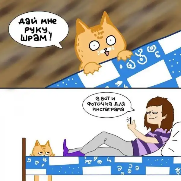 О такой наполненной питомцами жизни рассказывает в своих комиксах Лена Соломонова — иллюстратор, каллиграф и хозяйка Артурчика, Арчика, Дольки и Белки. О своей жизни с таким семейством она рассказывает в своих комиксах «Лакшери-Котакшери».