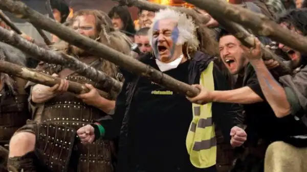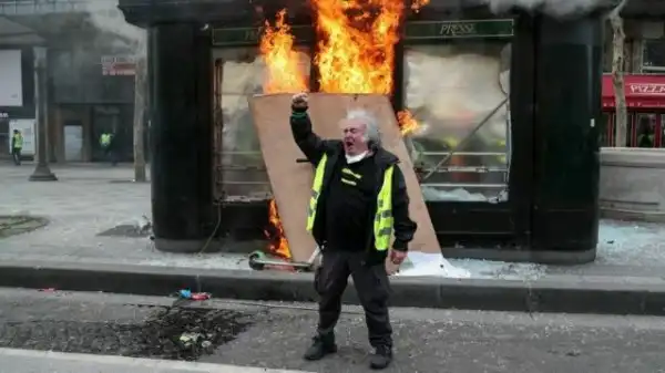 В середине марта пользователь Reddit под ником xyz1337 опубликовал на Reddit фотографию кричащего мужчины с протестов «жёлтых жилетов» во Франции. В ноябре 2018 года в стране начались акции против роста цен на бензин и дизельное топливо. Во время беспорядков пострадали не менее 500 человек, а протестующие разгромили экспонаты в музее Триумфальной арки. Акции продолжаются до сих пор: 16 марта бастующие начали громить и поджигать уличные киоски — тогда и был сделан снимок.