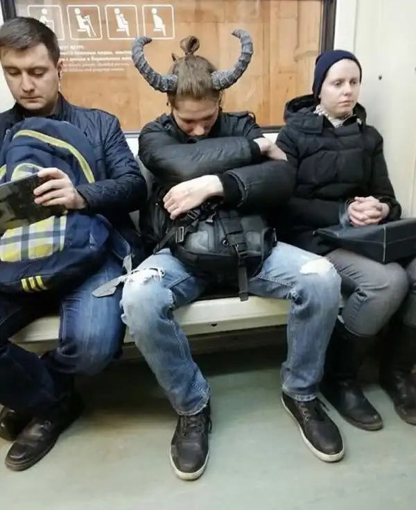 Очередная подборка фотографий со странными и модными персонажами, которых можно встретить в российском метро.