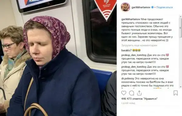 Гарик Харламов в своем Instargramе написал о том, что ему постоянно присылают фотки его "двойников".