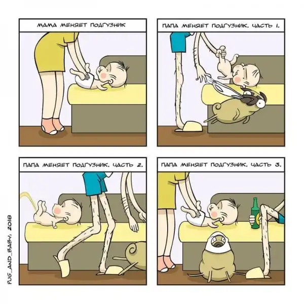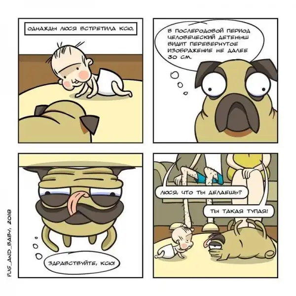 Скучать по жизни Ане не дают дочка Ксю и мопс Люся. Ну и лучший на свете муж Юрчаня (здесь мы цитируем художницу – прим. ред.). Как ни странно, смешные веб-комиксы молодая мама открыла для себя сравнительно недавно, и даже странно, что увлеклась ими, ведь она обожает мрачные триллеры и ужасы.