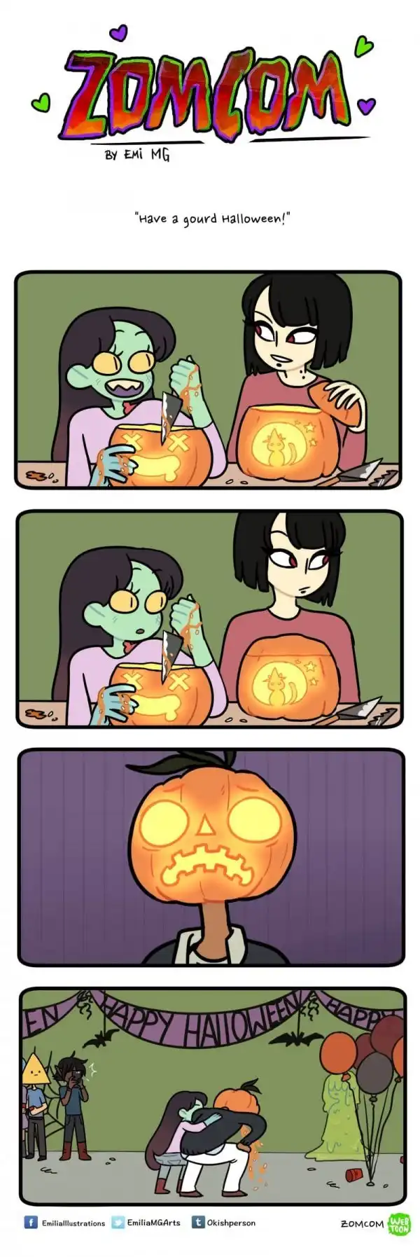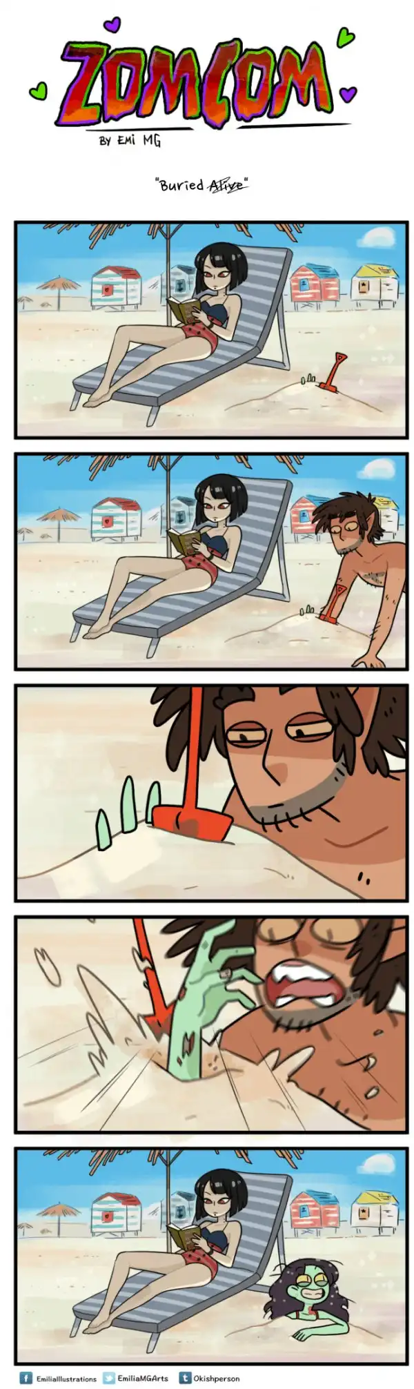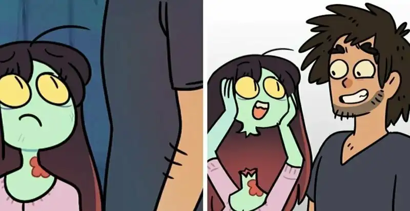 Зомби, оборотней и вампиров большинство из нас привыкло видеть только в качестве героев фильмов ужасов, где они предстают в самом неприглядном виде и кошмарят несчастных людей. Но у многих страшных бабаек есть и другая, более человечная сторона. Именно о ней и рассказывает в своих комиксах «ZomCom» британка по имени Эмилия.