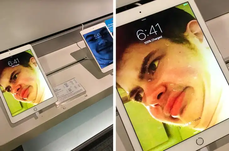 7. Этот парень оставил селфи на всех гаджетах в магазине