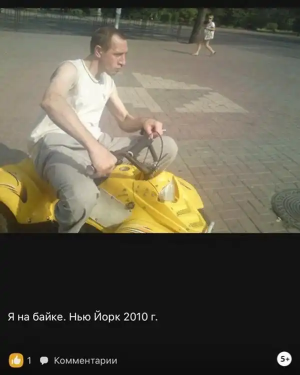 Некий персонаж из курганской глубинки постит в “Одноклассниках ” фоточки, повествующие о его интересной и насыщенной событиями жизни. Судя по фото, крутой бандюган знает толк в досуге (“бухаю водяру”) и не вылазит с супругой Инессой из “Америки”.