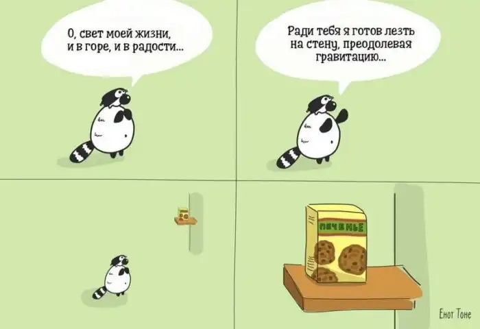 В сети живёт забавный енот Тоне , который рисует комиксы о своей жизни и выпускает книги с собой в главной роли. С Тоне постоянно случаются какие-то нелепые ситуации, которые веселят его читателей.