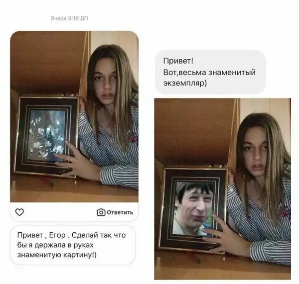 Блестящий фотошопер и остроумный тролль 80 уровня готов выполнить просьбу любого желающего. Правда, делает он это буквально, слово в слово, как попросили. За его творчеством в аккаунте инстаграм следит уже 400 тысяч человек.