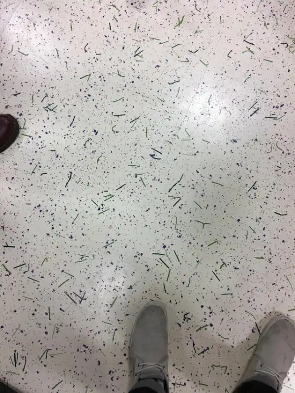 Это не небрежно вымытый пол после выноса новогодней елки - это такой дизайн.