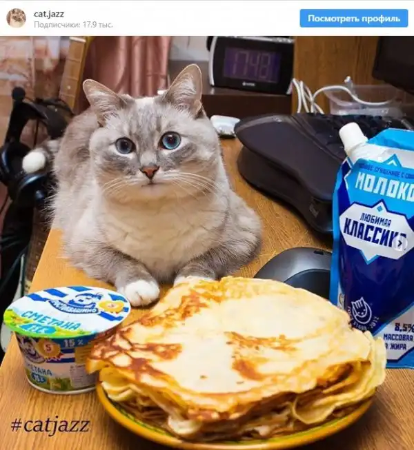 22 апреля исполнилось восемь лет пермскому коту Джазу — герою мема «кот с блинами». В 2015 году хозяйка сфотографировала животное на масленицу — кот сидел на стуле возле блинов с характерным выражением морды.