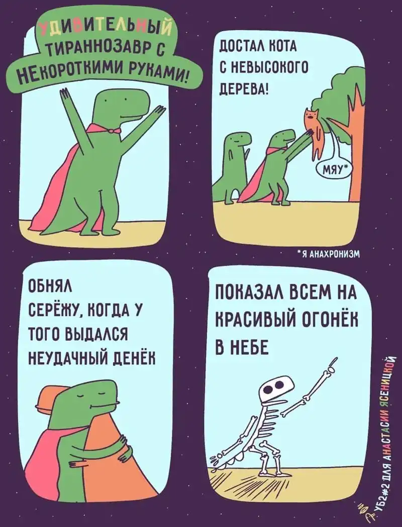 Сами комиксы насыщенны абсурдом, чёрным юмором, резкими поворотами, утконосами, динозаврами и другими важными атрибутами современных нарисованных сюжетов. Смотрим!