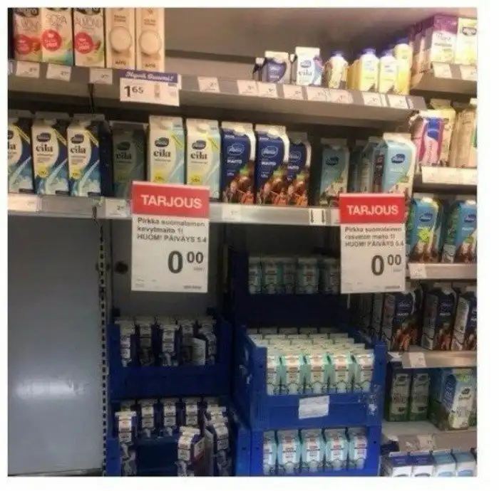 8. Нет, вам не показалось. Ценники с нулевой ценой в Финляндии ставят на товары с истекающим сроком годности