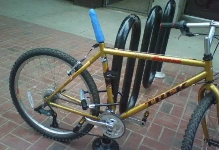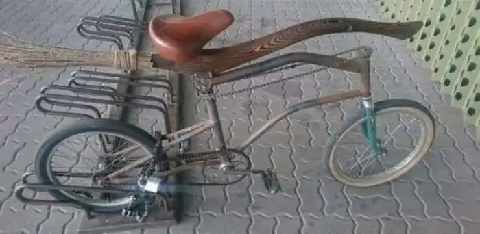 21. Самый суровый тип велосипеда. Явно не женский, тогда зачем синяя штукень? Может противоугонка?