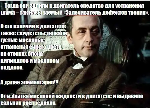 Приключения Шерлока Холмса и доктора Ватсона. Секрет выдавленного сальника распредвала.