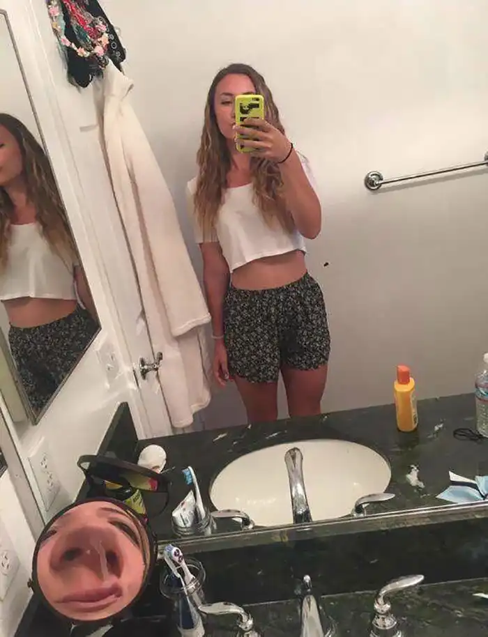 "Как-то увидела в общественном туалете клевое зеркало. Думаю, круто, сделаю пару селфи! Ну, и сделала..."