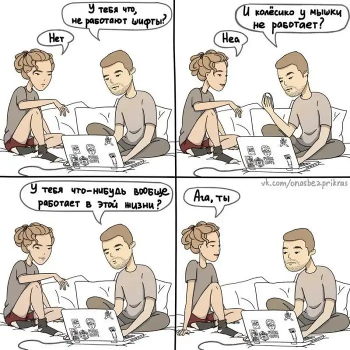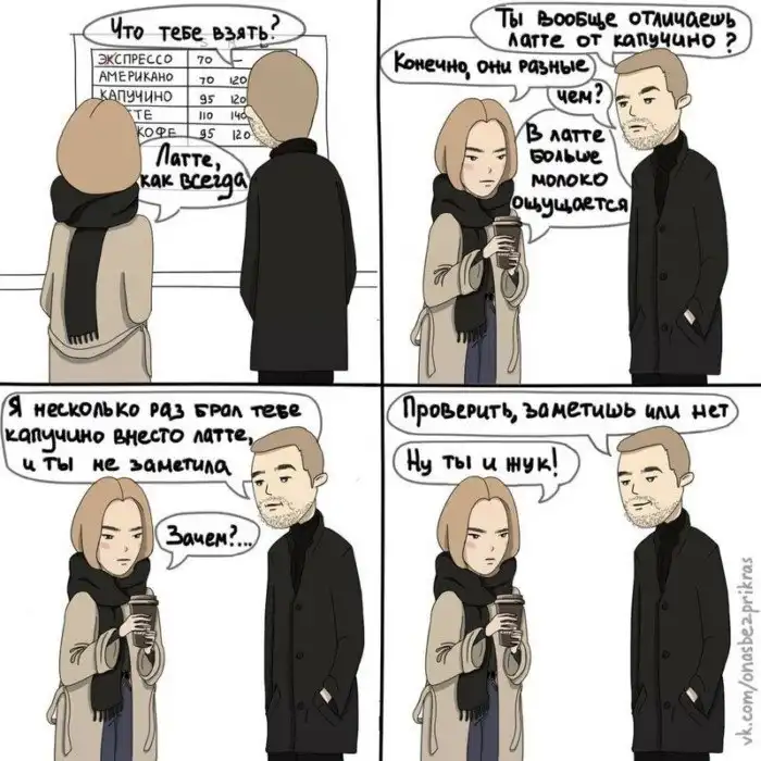 В паблике девушка публикует забавные комиксы про их отношения, в которых многие узнают себя. Связистом-пофигистом она называет своего парня, а снобом-социофобом — себя. Перед вами 20 комиксов.