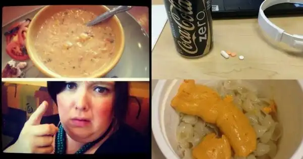 "Я забыла дома вилку, поэтому мне пришлось использовать блеск для губ, чтобы съесть свой творог"