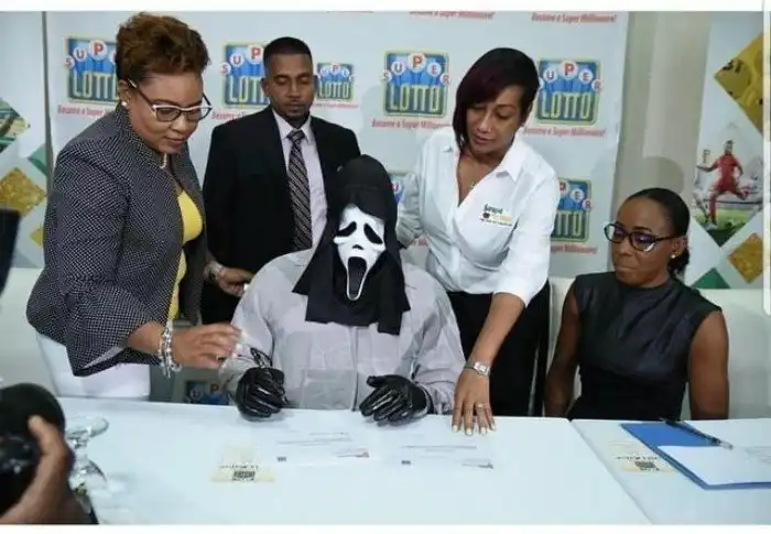 2. Человек, выигравший в лотерею, пришел за своим призом в маске. Согласитесь, выглядит сюрреалистично
