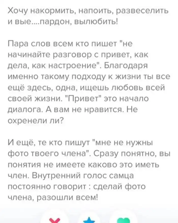 2. Чем бредовее анкета, тем больше шансов у нее попасть в нашу подборку