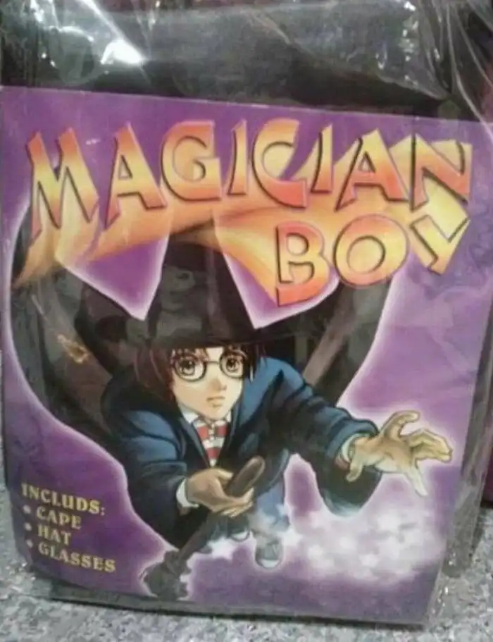 Чтобы не быть обвиненными в пиратском производстве костюмов Гарри Поттера, неизвестные мастера подделок назвали свое изделие просто - "Мальчик-волшебник". Так Гарри стал Тем. Кого Нельзя Называть