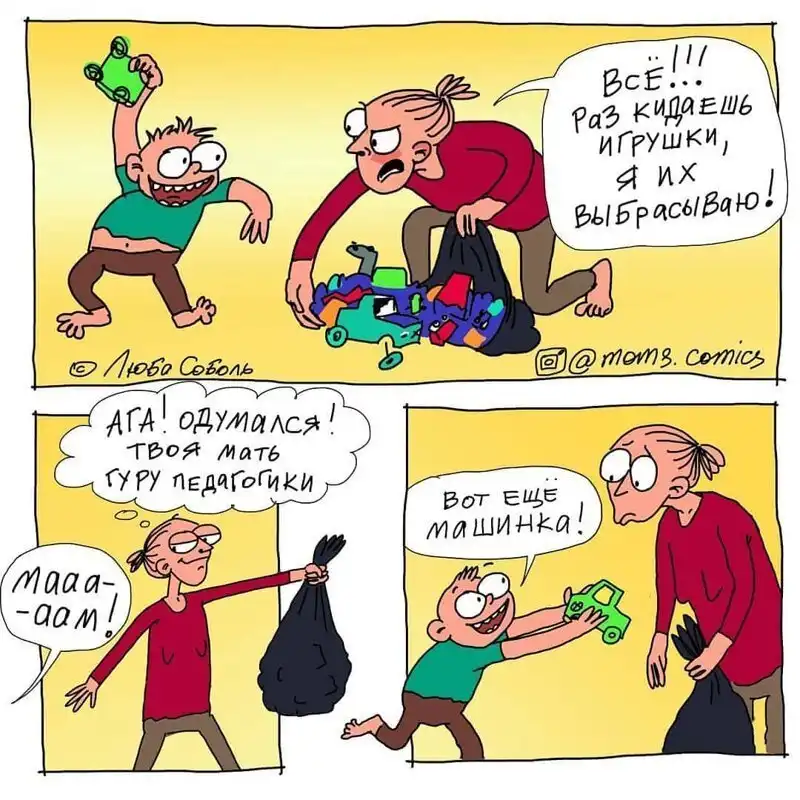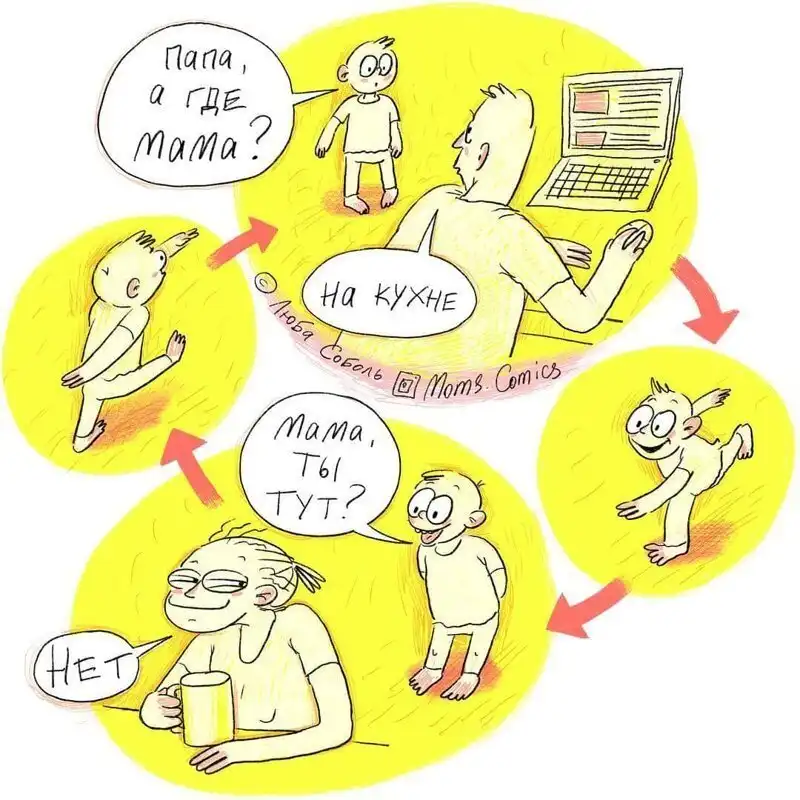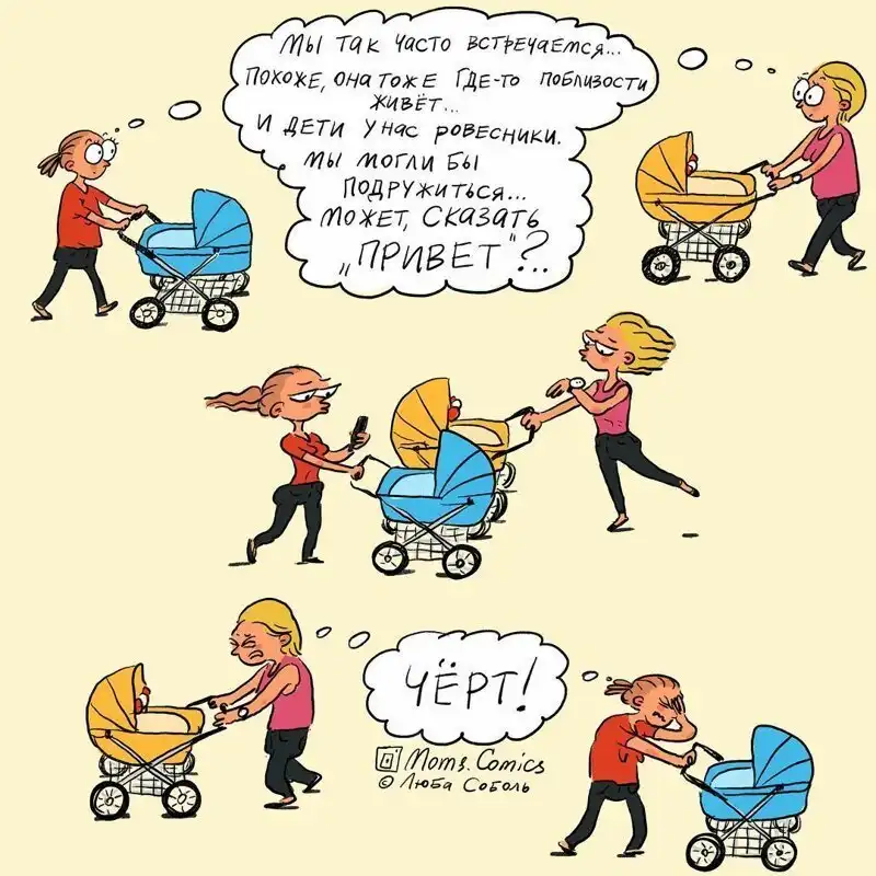 Художница и мама Люба Соболь рисует честные комиксы с красноречивым названием moms.comics, освещая бытовые моменты семейной жизни, которые кого-то бросают в дрожь, а кого-то заставляют понимающе покивать.