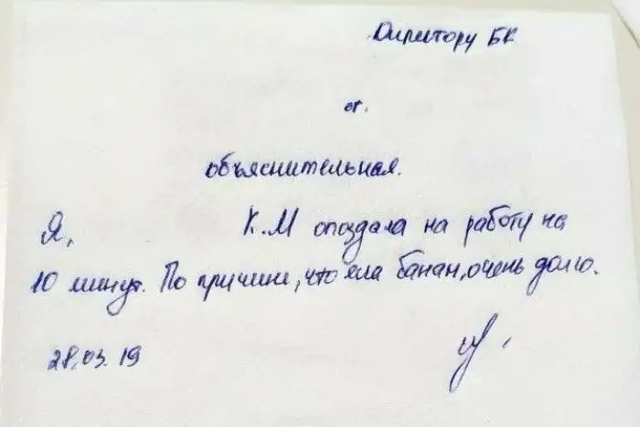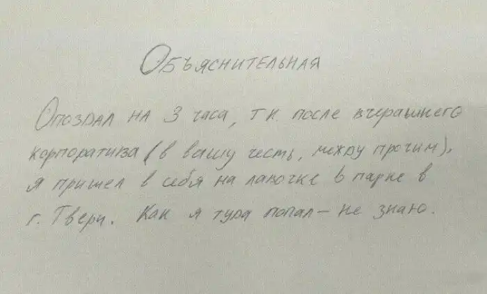 1. Часто опаздывайте на работу? Тогда эти гениальные тексты объяснительных точно для вас
