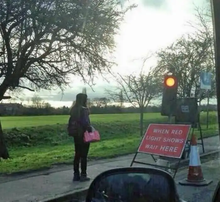 13. Девушка остановилась во время прогулки по тротуару, увидев сигнал светофора