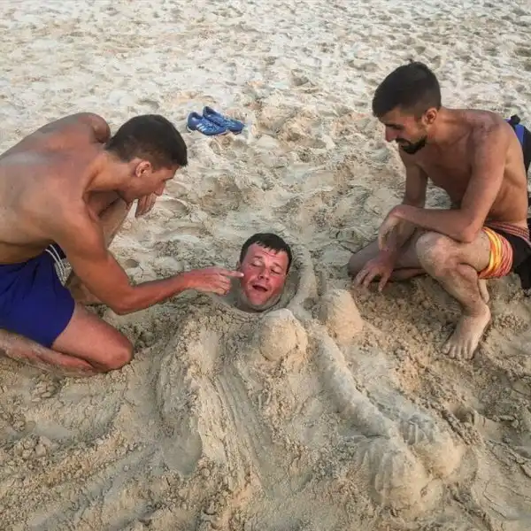Вот и наступил последний месяц лета…Загорайте, купайтесь, катайтесь на аттракционах… Испробуйте все пляжные развлечения, которые только можно. И обязательно заройте кого-нибудь в песок, или заройтесь сами, как это делают наши герои.