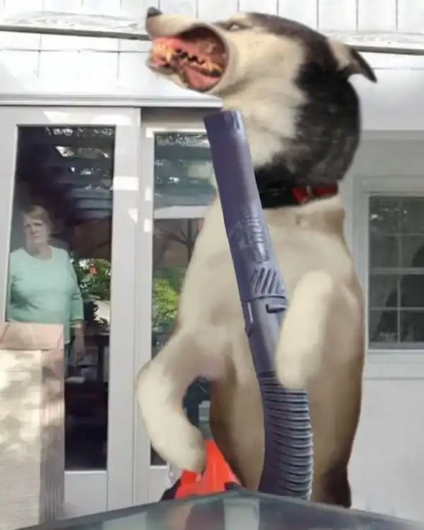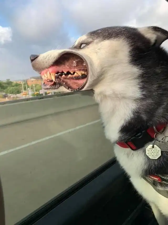 Одной из самых позитивных картин на любой дороге является собака, высунувшая морду в открытое окно машины. Мохнатые любимцы, так же как и люди, любят проехаться с ветерком. Но видимо автомобиль, в котором ехал этот хаски, несся слишком быстро. Ветер крайне удачно оголил оскал собаки, а фотограф вовремя словил кадр. Фото попало в соцсети и фотошоперы не смогли пройти мимо "зубатого" песика. Так начался очередной фотошоп-батл.