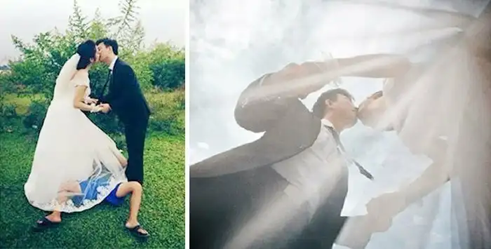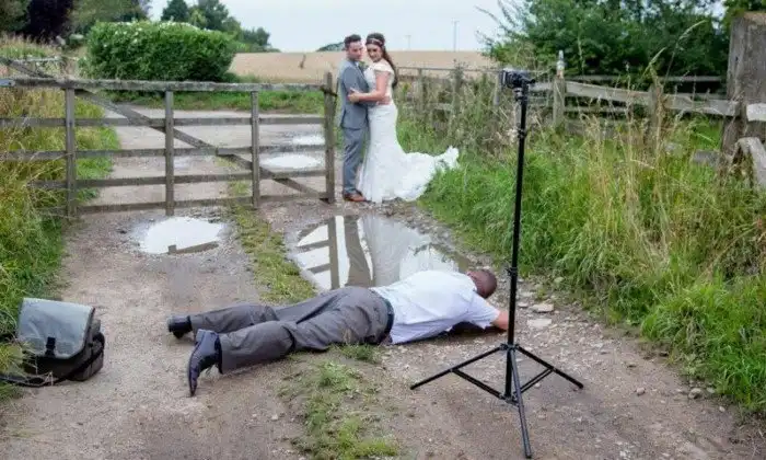 У свадебных фотографов работа тоже не мед. На что только не приходится им идти, чтобы получить приличный кадр!
